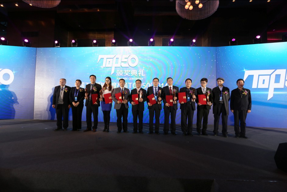 Staff from SDLG collect the latest Top 50 awards for the company at a special ceremony held earlier this year in Beijing
