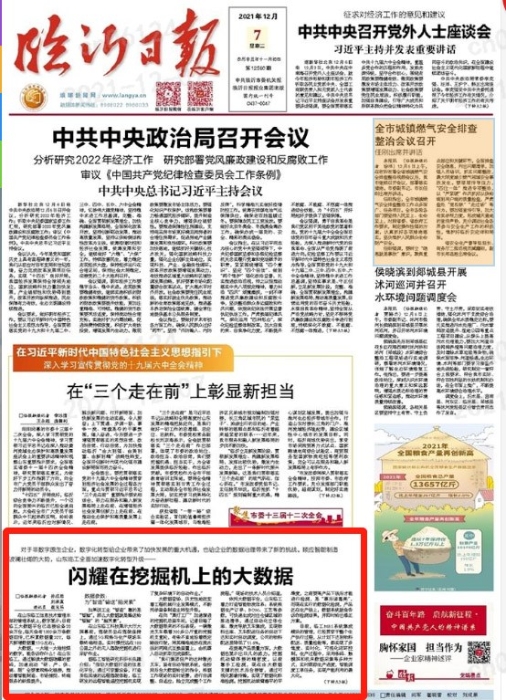 12月7日,《临沂日报》刊登了一篇题为《闪耀在挖掘机上的大数据》的文章,深入介绍了中国·5001拉斯维加斯(股份)有限公司数字化转型之路,引发了众多关注。